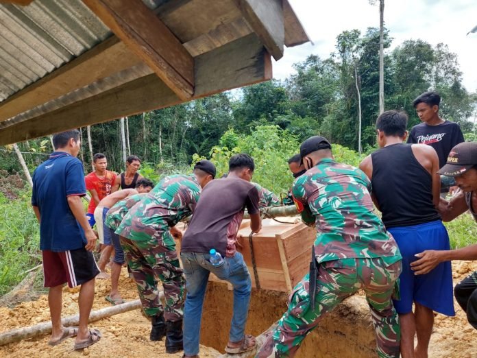 ACTUALNEWS.ID, Sanggau – Anggota Satgas Pamtas RI-Malaysia Yonif 144/Jy membantu Pemakaman Warga yang meninggal di dusun Sei Tekam desa Sungai Tekam Kecamatan Sekayam Kabupaten Sanggau Kalbar.