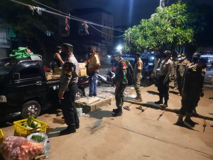 Giat Apel Patroli wilayah dipimpin Kapospol Jembatan Lima Iptu Suparsono bertempat di Pasar Mitra jalan KH. Moch Mansyur Kelurahan Jembatan Lima, Kecamatan Tambora Jakarta Barat, Rabu (28/7) malam