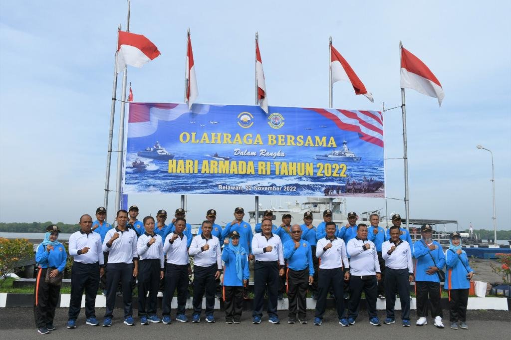 Sambut HUT Armada RI Lantamal I Belawan Gelar Olahraga Bersama, TNI AL, Lantamal I Belawan,- Dalam rangka menyambut peringatan Hari Armada RI Tahun 2022 yang jatuh pada tanggal 5 Desember mendatang, Lantamal I Belawan menggelar olahraga bersama, bertempat di Lapangan Apel Markas Komando Lantamal I, Selasa (22/11/2022).