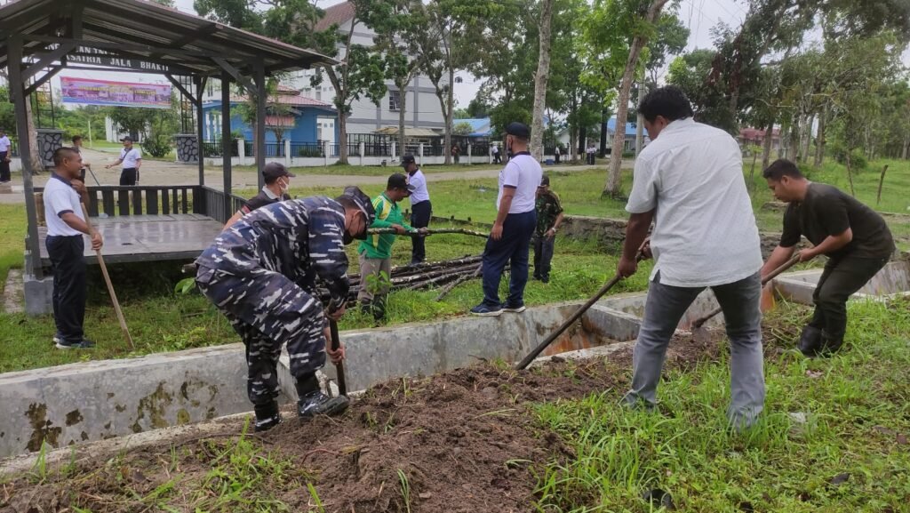 ACTUALNEWS.ID, Tanjung Balai – Semarakkan HUT Ke-17 Lanal Tanjung Balai Asahan Tahun 2022, Prajurit Pangkalan TNI AL Tanjung Balai Asahan melaksanakan kerja bakti membersihkan lingkungan sekitar Komplek TNI AL Lumba-Lumba, Kelurahan Sei Raja, Kecamatan Sei Tualang Raso, Kota Tanjungbalai, Selasa (8/3/2022).
