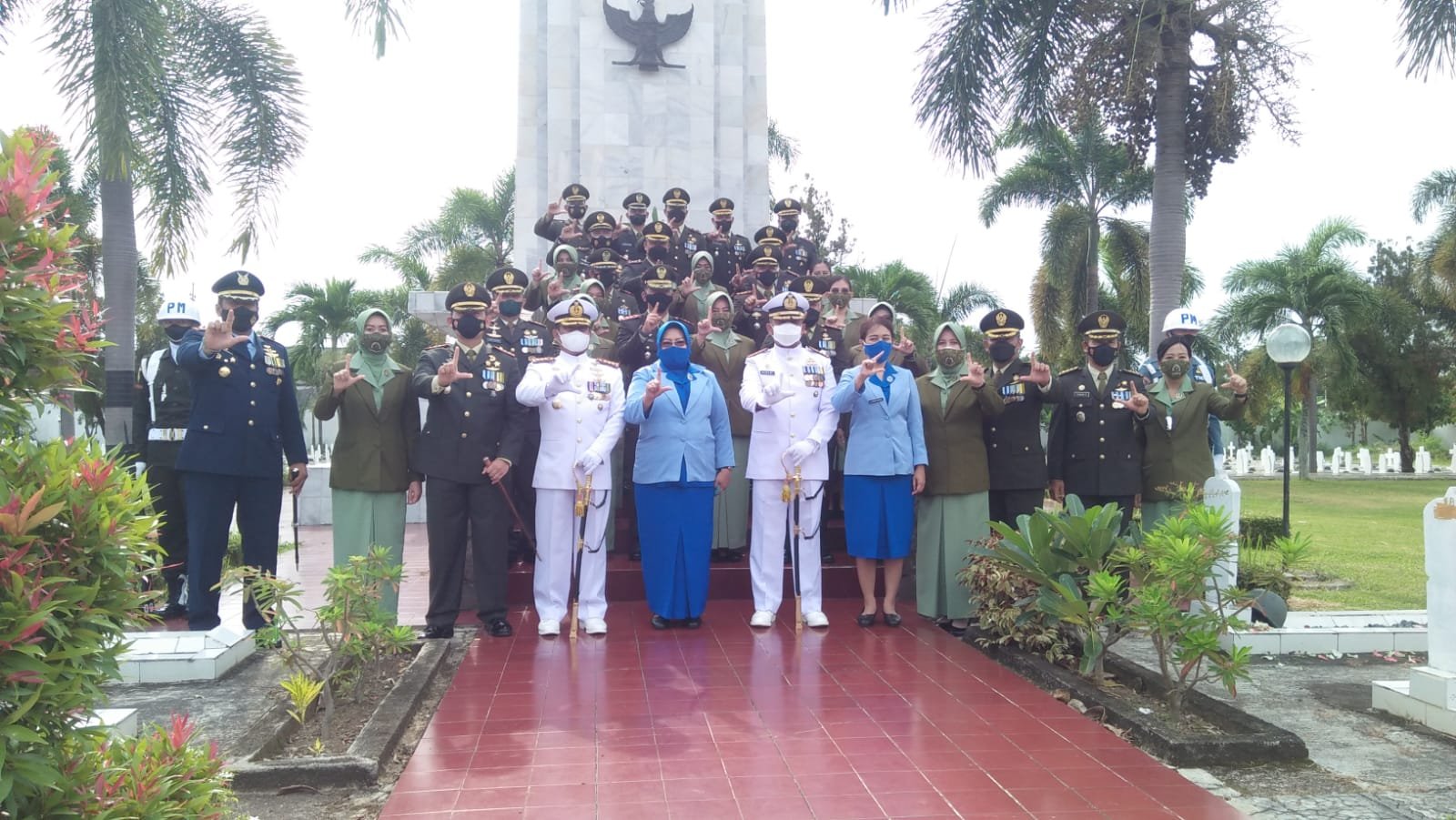 ACTUALNEWS.ID, Lampung – Dalam rangka menyambut Hari Ulang Tahun (HUT) Ke-76 Tentara Nasional Indonesia (TNI) tahun 2021 yang diperingati setiap tanggal 5 Oktober, Komandan Pangkalan TNI Angkatan Laut (Lanal) Lampung Kolonel Laut (P) Nuryadi selaku Inspektur Upacara (Irup) memimpin Upacara Ziarah dan tabur bunga gabungan Korem 043/Gatam, Lanal Lampung dan Lanud Pangeran M. Bun Yamin beserta Ibu-Ibu Persit KCK, Jalasenastri dan Pia Adhiya Garini, bertempat di Taman Makam Pahlawan (TMP) Tanjung Karang, Bandar Lampung, Senin (4/10).