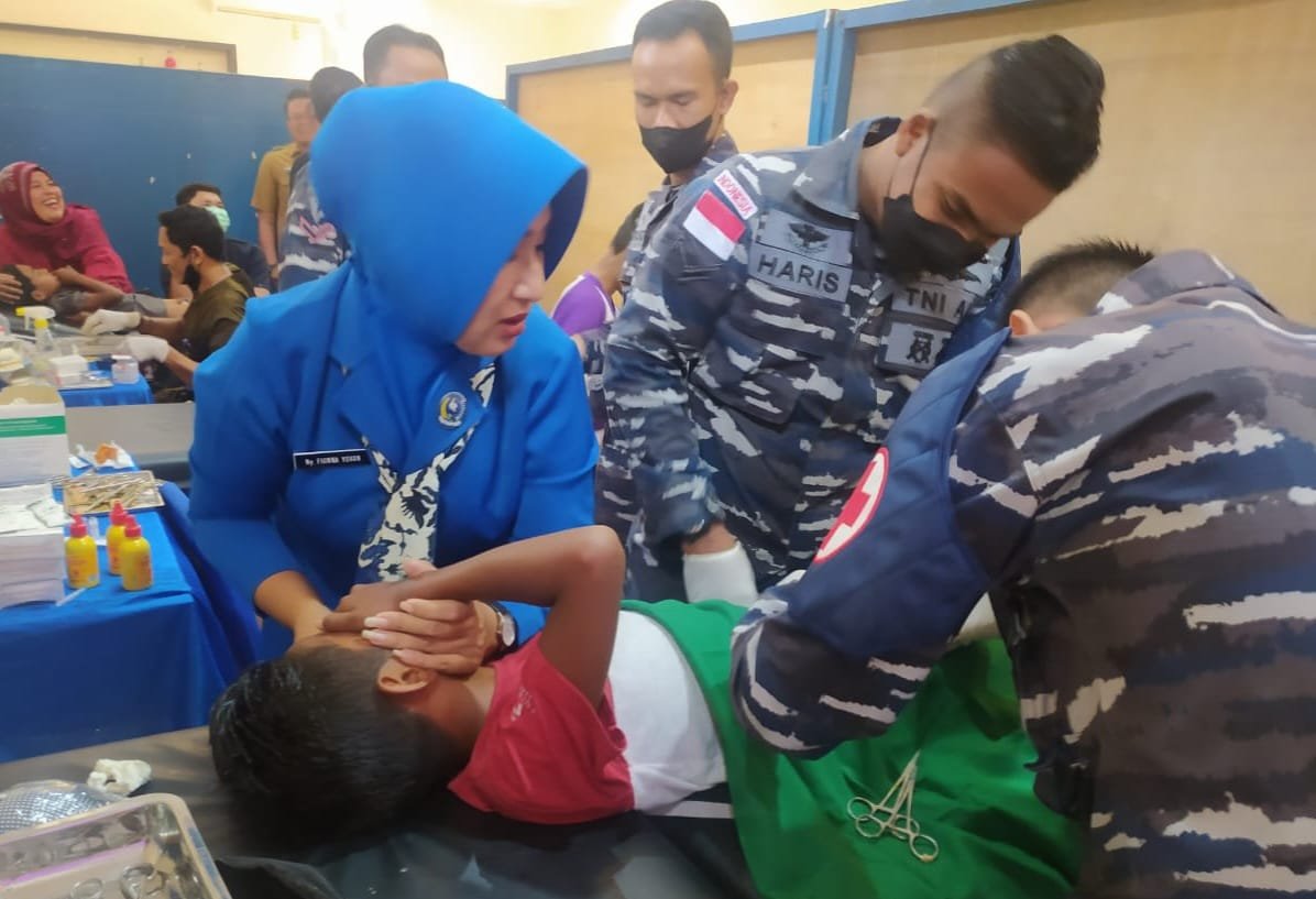 ACTUALNEWS.ID, Kepulauan Anambas,- Dalam rangka peringatan Hari Ulang Tahun ke-77 TNI Angkatan Laut Tahun 2022 yang jatuh pada tanggal 12 September, Komandan Pangkalan TNI Angkatan Laut Tarempa Letkol Laut (P) Yovan Ardhianto Yusuf, S.E., M.Tr. Opsla. menyelenggarakan Bhakti Kesehatan berupa Khitanan Massal dan Pengobatan Gigi di Gedung Napoleon dan Balai pengobatan Lanal Tarempa, Jalan Kartini, Kelurahan Tarempa, Kecamatan Siantan, Kabupaten Kepulauan Anambas, Selasa (06/09/2022).