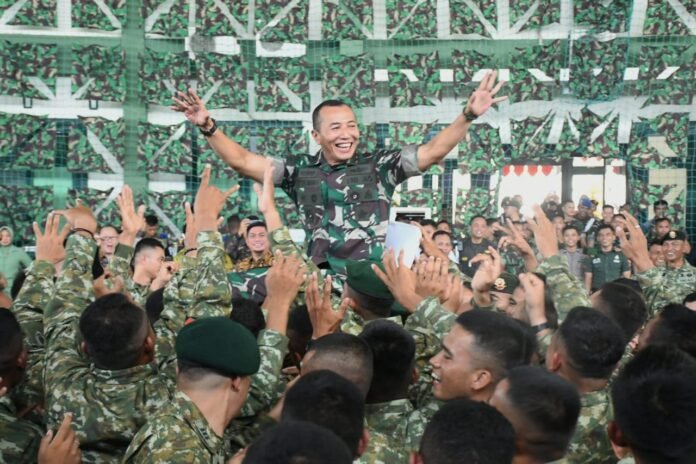 ACTUALNEWS.ID, Gowa – Pangdam XIV/Hasanuddin Mayjen TNI Dr. Totok Imam Santoso, S.I.P., S.Sos., M.Tr (Han)., didampingi sejumlah Pejabat Utama (PJU) Kodam XIV/Hasanuddin menghadiri acara lepas sambut Pangdivif-3/Kostrad dari Mayjen TNI Dwi Darmadi, S.Sos., M.I.P., kepada Brigjen TNI Novi Helmy Prasetya, S.I.P., M.I.P., bertempat di Markas Divisi-3/Kostrad, Gowa. Kamis (8/12/2022).