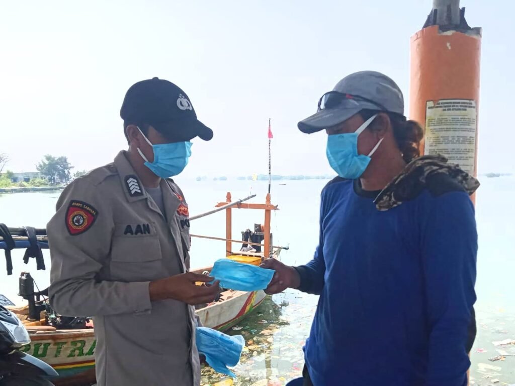 Masker dibagikan secara door to door kepada warga yang sedang berada di Dermaga Keberangkatan menuju Pulau Seribu oleh Polres sedangkan Polsek jajaran membagikan di pulau pulau permukiman diwilayahnya.