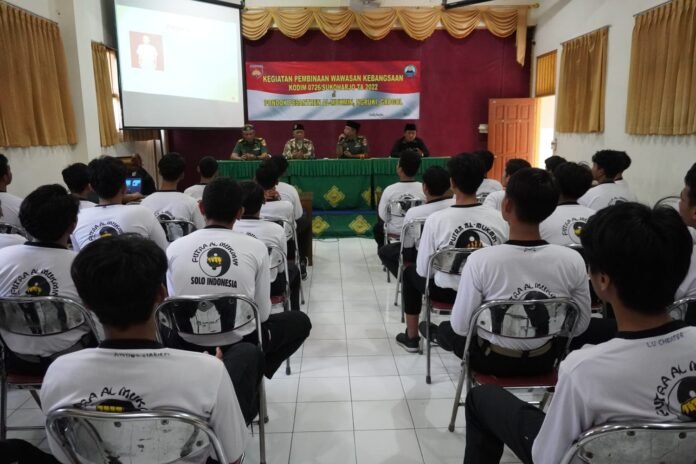 ACTUALNEWS.ID, Sukoharjo (25/08/2022) Sekitar 50 orang Santri Ponpes Al mukmin, Ngruki, Cemani, Kec. Grogol Kab. Sukoharjo mengikuti kegiatan Wawasan Kebangsaan yang dilaksanakan oleh Kodim 0726/Sukoharjo.