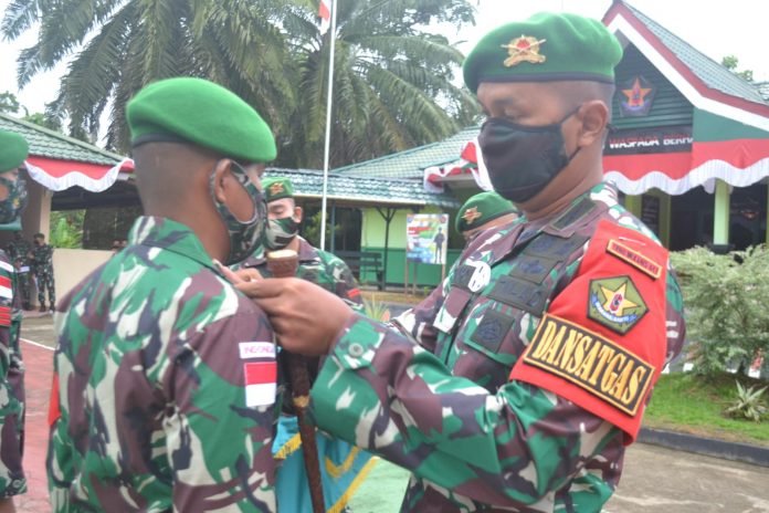 ACTUALNEWS.ID, Sanggau – Meskipun sedang menjalankan tugas negara mengamankan wilayah perbatasan Republik Indonesia dengan Malaysia, Satgas Pamtas Yonif Mekanis 643/Wns menggelar acara kenaikan pangkat satu tingkat dari pangkat semula sebagai bentuk penghormatan kepada para Prajurit yang dilaksanakan dengan sederhana dan khidmat di Makotis Entikong, Kab. Sanggau. Jum’at (1/10/21)