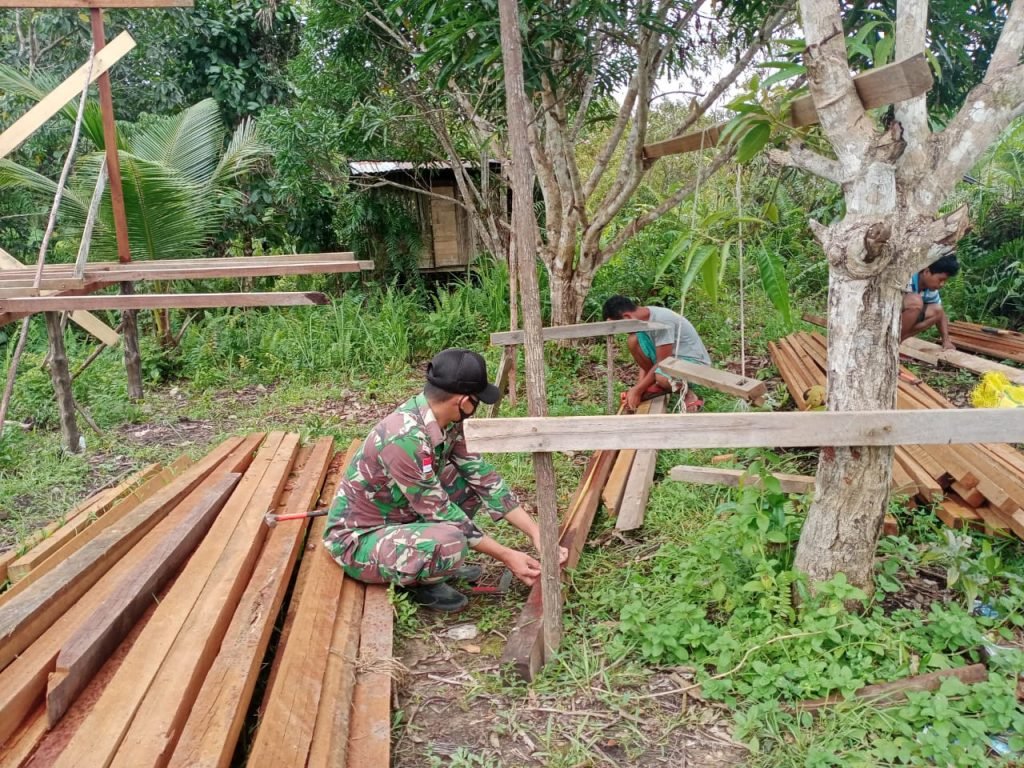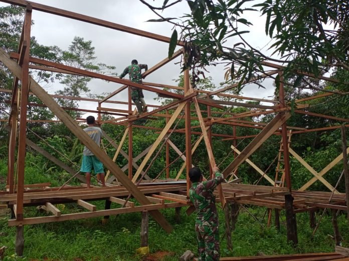 ACTUALNEWS.ID, Jakarta -Anggota Satgas Pamtas RI-Malaysia Yonif 144/JY menggelar karya bakti pembuatan rumah warga di Desa Sebindang Kecamatan Badau Kabupaten Kapuas Hulu Kalbar.
