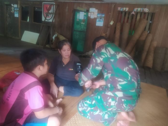 ACTUALNEWS.ID, Jakarta, Anggota Satgas Pamtas RI-Malaysia Yonif 144/JY menyosialisasikan protokol kesehatan dan melaksanakan pengobatan gratis di Desa Kapar Kecamatan Batang Lupar, Kabupaten Kapuas Hulu, Kalimantan Barat.