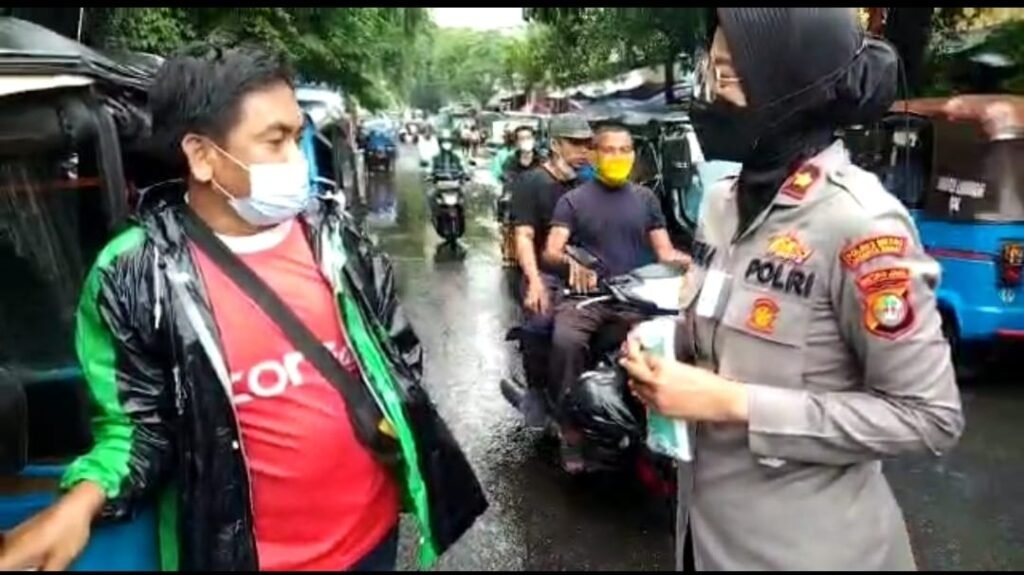 ACTUALNEWS.ID, Jakarta – Satuan Binmas Polres Metro Jakarta Barat membagikan masker gratis kepada pedagang dan penjual serta tukang bajaj dan ojek yang mangkal di sekitar PD Pasar Jaya Tomang Barat Kel Tanjung Duren Selatan Grogol Petamburan Jakarta Barat, Senin, 14/2/2022.