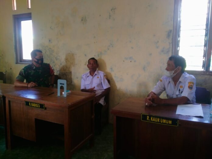 ACTUALNEWS.ID, Sragen – Dalam rangka meningkatkan sinergitas di wilayah binaanya, Sertu Giyanto Babinsa Bukuran Koramil 18/Kalijambe Kodim 0725/Sragen melaksanakan kegiatan Komsos dengan Perangkar Desa Bukuran bertempat di Kantor Desa Bukuran Kec. Kalijambe, Kabupaten Sragen, (10/03/2022).