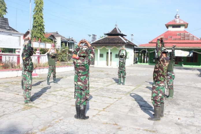 ACTUALNEWS.ID, Sukoharjo – (06/09/21) Mengawali aktifitas pekerjaan pagi ini, Serka Sukarmin memimpin senam peregangan di halaman Kantor desa Majasto, Kecamatan Tawangsari, Kabupaten Sukoharjo, dengan tetap mengedepankan protokol kesehatan yang ketat. Senin (06/09/21).