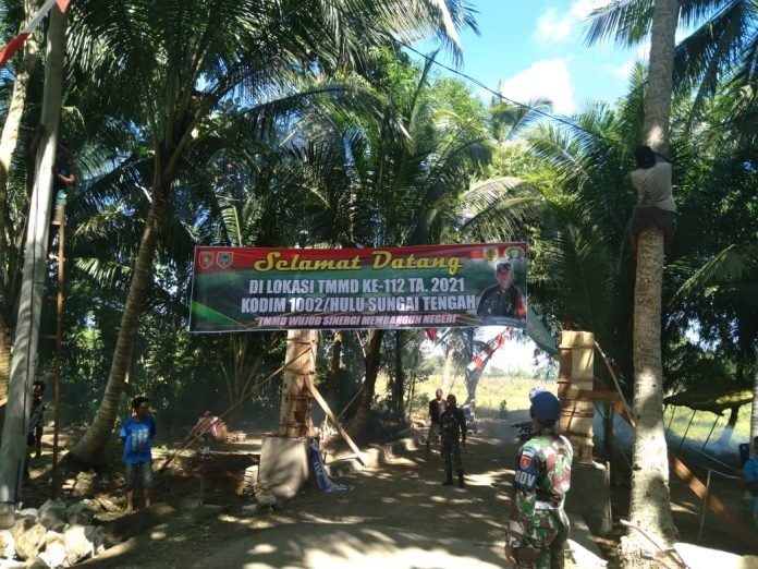 ACTUALNEWS.ID, Barabai – Sejumlah TNI yang tergabung dalam Satgas TNI Manunggal Membangun Desa (TMMD) Ke-112 Kodim 1002/Hulu Sungai Tengah (HST), bersama warga Desa Rantau Keminting, Kecamatan Labuan Amas Utara mulai mempersiapkan pembukaan TMMD ke-112. Selasa, (14/9/2021).