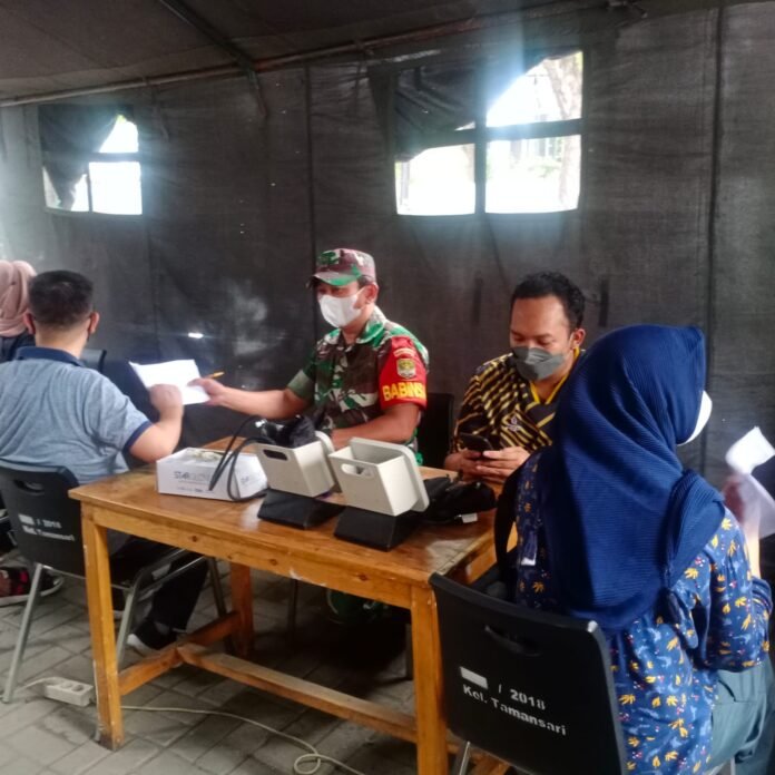 ACTUALNEWS.ID, Kodam Jaya, Jakarta Barat – Kolaborosi 4 Pilar Tamansari dalam melayani masyarakat vaksin di serbuan vaksinasi Kodim 0503/JB yang dilaksanakan Koramil 01/Tamansari di halaman stadion sepak bola Tamansari Jalan Mangga Besar VI Utara, Rt. 008/01, Kel. Tamansari, Kec. Tamansari. Jumat (25/3).