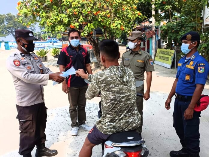 Sementara Polsek Kepulauan Seribu Selatan membagikan masker di Pulau Tidung, Pulau Pari, Pulau Lancang dan Pulau Untung Jawa.