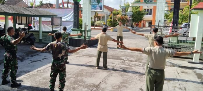 ACTUALNEWS.ID, Sragen, Meski pandemi Covid-19 berangsur-angsur membaik, Anggota Koramil 02/Karangmalang Kodim 0725/Sragen melaksanakan senam pagi bersama sebelum melaksanakan aktivitas guna menjaga kebugaran tubuh dan untuk meningkatkan imun, Jum’at ( 07/10/2022 ).