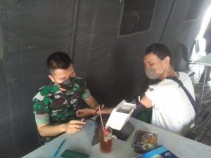 Giat vaksin yang di mulai pukul 08.00 Wib hingga 14.00 Wib di Jalan Mangga Besar VI Utara, Rt. 008/001, Kel. Tamansari, Kec. Tamansari dengan 1 team Picare yang dipimpin Lettu Kav Mansur serta monitoring kegiatan Vaksin oleh Babinsa Koramil 01/Ts, Serda Abdi Amrizal.