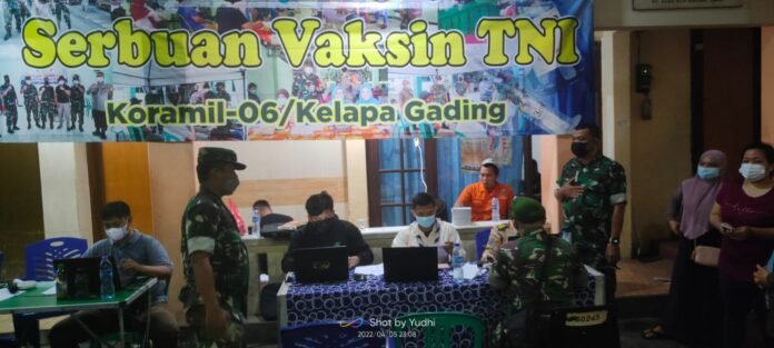 ACTUALNEWS.ID, Jakarta Utara – Kodim 0502/Jakarta Utara bersama Koramil-06/Kelapa Gading menggelar serbuan Vaksinasi TNI malam hari di Halaman Masjid Al Jihad Kelapa Gading Timur Kec. Kelapa Gading Jakarta Utara, Selasa mlam (5/4/2022).