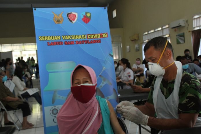 ACTUALNEWS.ID, Pentak Lanud Sam Ratulangi Manado – Program Pemerintah “Serbuan Vaksinasi” tidak hanya menyasar Generasi Milenial yakni anak-anak dan dewasa, namun juga bagi Oma & Opa yang berusia lanjut. Oma-Opa (Generasi yang lahir di tahun-tahun awal perkembangan teknologi dan informasi) tetap terlayani oleh Tim Vaksin Hebat dalam Serbuan Vaksinasi yang terus berlangsung, Selasa (27/07/2021), di gedung Balai Prajurit “Tentara Langit” Lanud Sam Ratulangi, Lapangan, Kecamatan Mapanget, Sulawesi Utara,