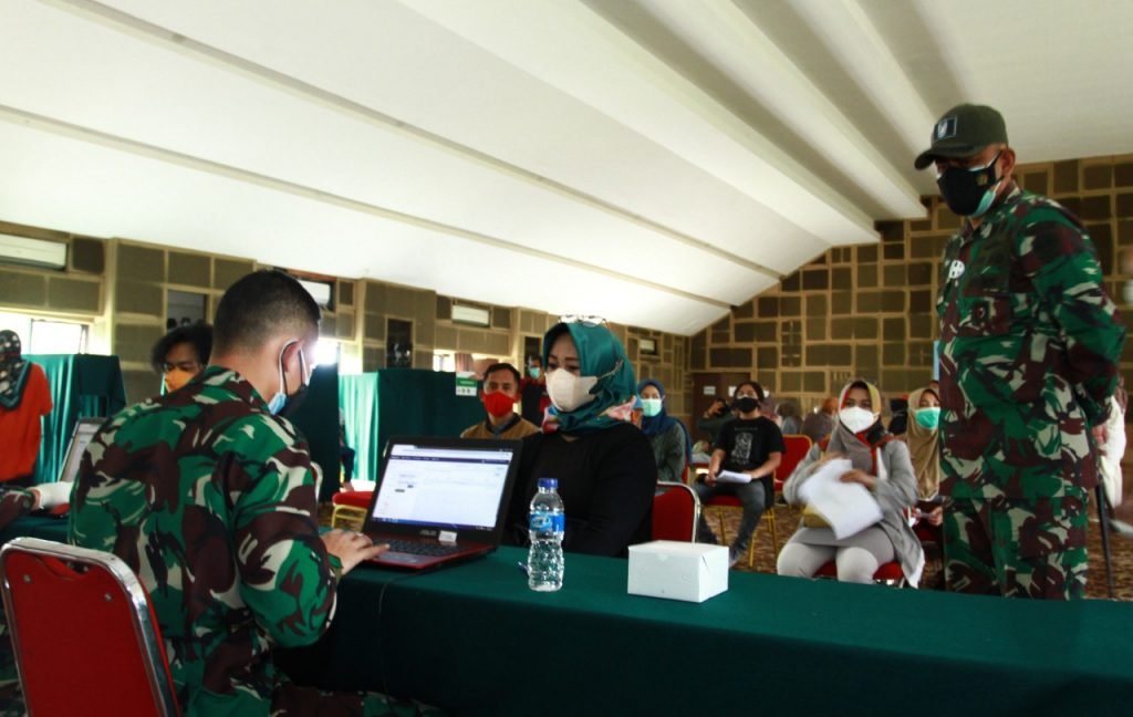 ACTUALNEWS.ID, CIANJUR – Serbuan vaksinasi Covid-19 oleh TNI secara nasional terus digulirkan. Kali ini Kodim 0608/Cianjur yang bekerjasama dengan Artha Graha Peduli menyasar sebanyak 500 warga di wilayah Kecamatan Cipanas, Kabupaten Cianjur, yang berlangsung di Hotel Palace, Kamis (22/7/2021).