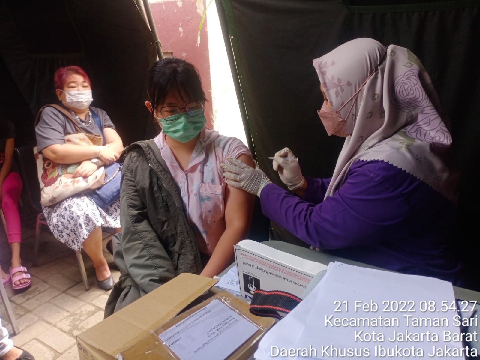 Serbuan vaksinasi Kodim 0503/JB yang dilaksanakan Koramil 01/TS setiap hari senin hingga hari Jumat, setiap harinya melayani masyarakat baik dari wilayah DKI Jakarta maupun luar DKI.