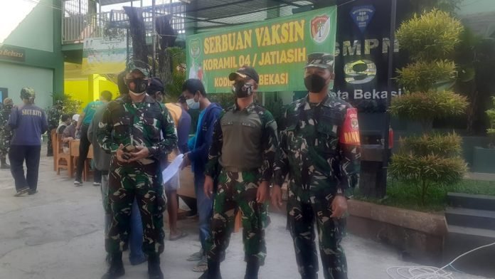 ACTUALNEWS.ID, Bekasi – Minggu 18 juli 2021. Komando Distrik Militer (Kodim) 0507/Bekasi, Komando Rayon Militer (Koramil) 04/JA. pada hari ini melaksanakan Vaksinasi masal yang di adakan di lingkungan Kecamatan Jatiasih.