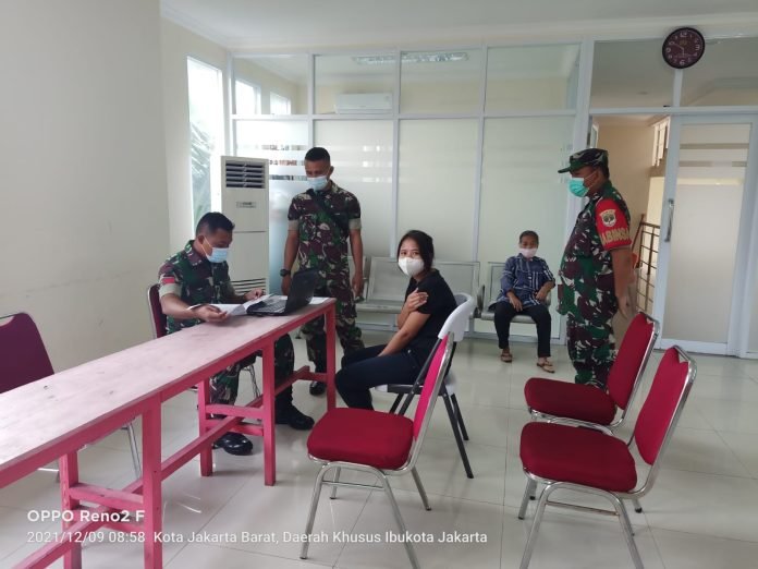 ACTUALNEWS.ID, Jakarta – Serbuan Vaksinasi TNI dari Kodim 0503/JB yang di gelar Koramil 02/TB terus berlanjut dalam rangka percepatan vaksinasi nasional dengan pelaksana team nakes dari Polkes Team Denrudal 003 :4 Personil dipimpin Letu Arh Umar Ode BKO Yonkav 9/SDK : 4 Personil dipimpin Sertu Ardi F