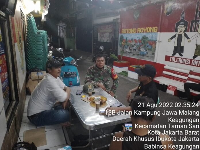 ACTUALNEWS.ID, Kodam Jaya, Jakarta Barat – Babinsa Koramil 01/Tamansari Kodim 0503/Jakarta Barat, Serda Abdi Amrizal melaksanakan Komunikasi Sosial (Komsos) di Kampung Pancasila, Jalan Kampung Jawa Malang, Rt. 015 / 007, Kel. Keagungan, Kec. Tamansari Jakarta Barat. Minggu (21/8).