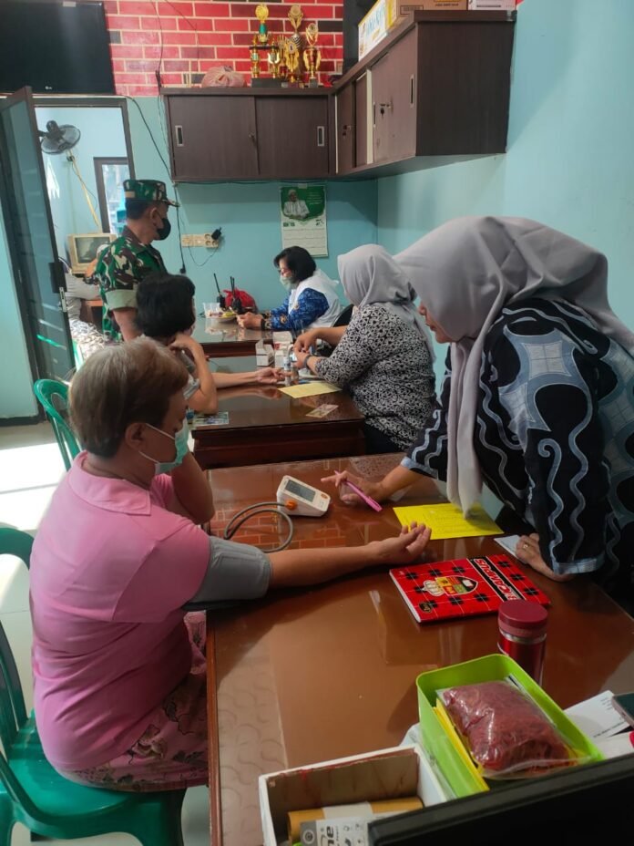 Kegiatan Posbindu dalam rangka pemeriksaan kesehatan dan juga pemberian vitamin kepada Lansia oleh pelaksana tim medis Puskesmas Kecamatan dipimpin Bidan Rugun
