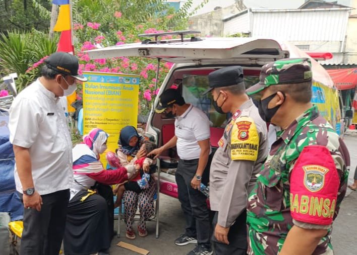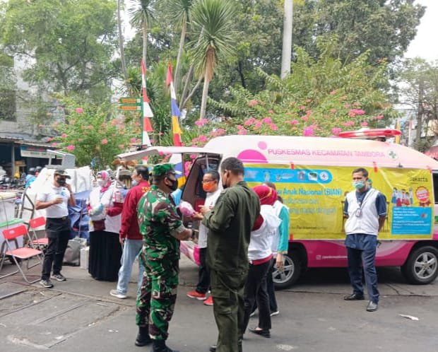 ACTUALNEWS.ID Kodam Jaya Jakarta -Serma Doddy dan Sertu Slamet Babinsa Koramil 02/TB Kodim 0503/JB Monitoring Pekan BIAN (Bulan Imunisasi Anak Nasional) bertempat di Pasar Pagi Roa Malaka Jl. Petekongan RT 04/01 Kel. Roa Malaka Kec. Tambora Jakarta Barat.Jumat (26/8).