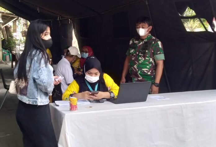 ACTUALNEWS.ID, Kodam Jaya, Jakarta Barat – Sertu Asrianto Babinsa Koramil 01/Tamansari Kodim 0503/Jakarta Barat melaksanakan Komunikasi Sosial (Komsos) dengan Tenaga Kesehatan (Nakes) puskesmas Tamansari yang sedang melaksanak vaksinasi.