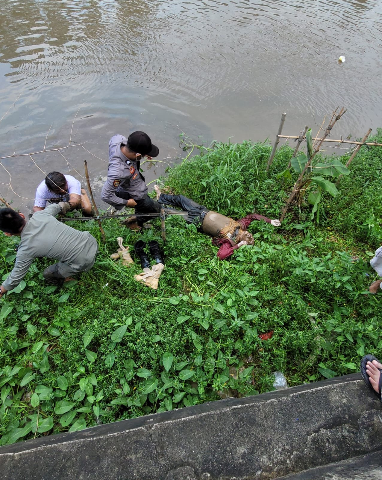 “Melihat adanya sesosok mayat yang mengambang tersebut saya langsung memerintahkan anggota Saya yang bernama Syarip kemudian langsung turun ke kali dan mengangkatnya kepinggir untuk di evakuasi”.Terang Daenk Jamal