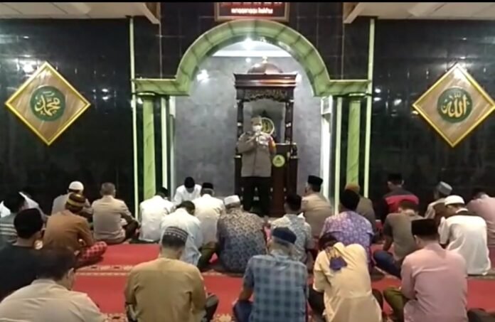 ACTUALNEWS.ID, Jakarta – Shalat Shubuh Berjamaah, Kapolsek Kalideres Akp Syafri Wasdar mengajak masyarakat menjelang bulan suci ramadan untuk tetap mematuhi protokol kesehatan ditengah pandemi Covid 19.