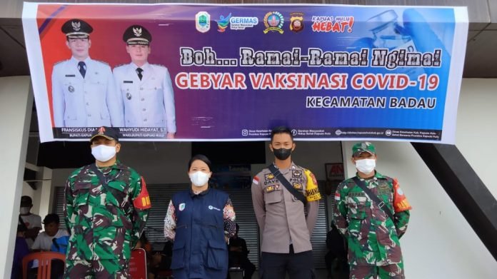 Untuk percepatan cakupan Vaksinasi Covid-19 di Kalimantan barat khususnya di kecamatan Badau, pelaksanaan gebyar Vaksinasi Covid-19 melibatkan TNI Polri dalam membantu kegiatan Vaksinasi, harapan nya semua warga yang sudah di data di kelurahan masing-masing segera di Vaksinasi agar percepatan penanganan Covid-19 cepat selesai,dan ini merupakan program pemerintah yang wajib kita dukung”, Ucapan nya.