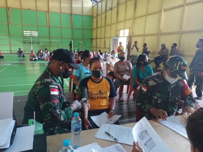 Kegiatan ini berjalan dengan lancar, Semua warga antusias untuk mendatangi puskesmas yang di selenggarakan,dan selalu mematuhi protokol kesehatan dan bermasker dalam beraktivitas.(Pen Yonif 144/JY).