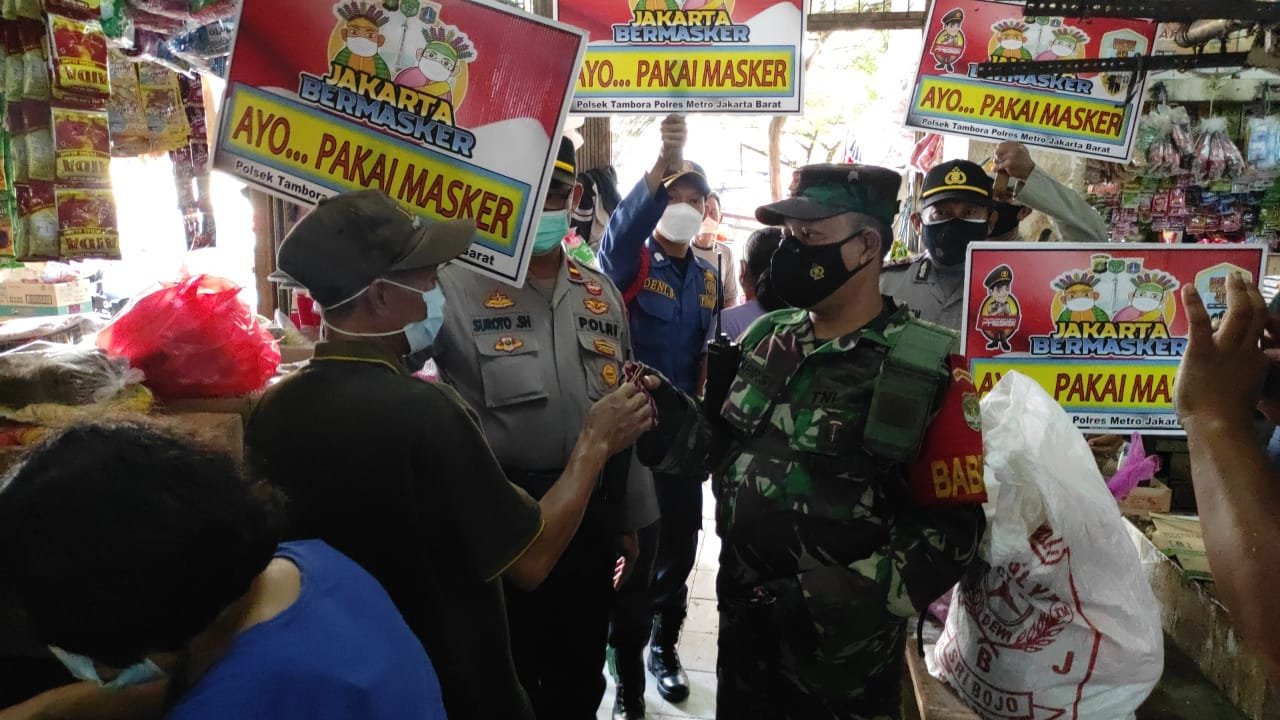 Kegiatan PPKM dan pembagian 200 masker tersebut dilaksanakan dengan menurunkan 16 personil dari Koramil 02/TB 2 Personil dipimpin Serda Sarip, Polsek Tambora 5 Personil dipimpin Iptu Suparsono Pol PP 3 personil, Dishub 3 personil dan Damkar 3 personil.