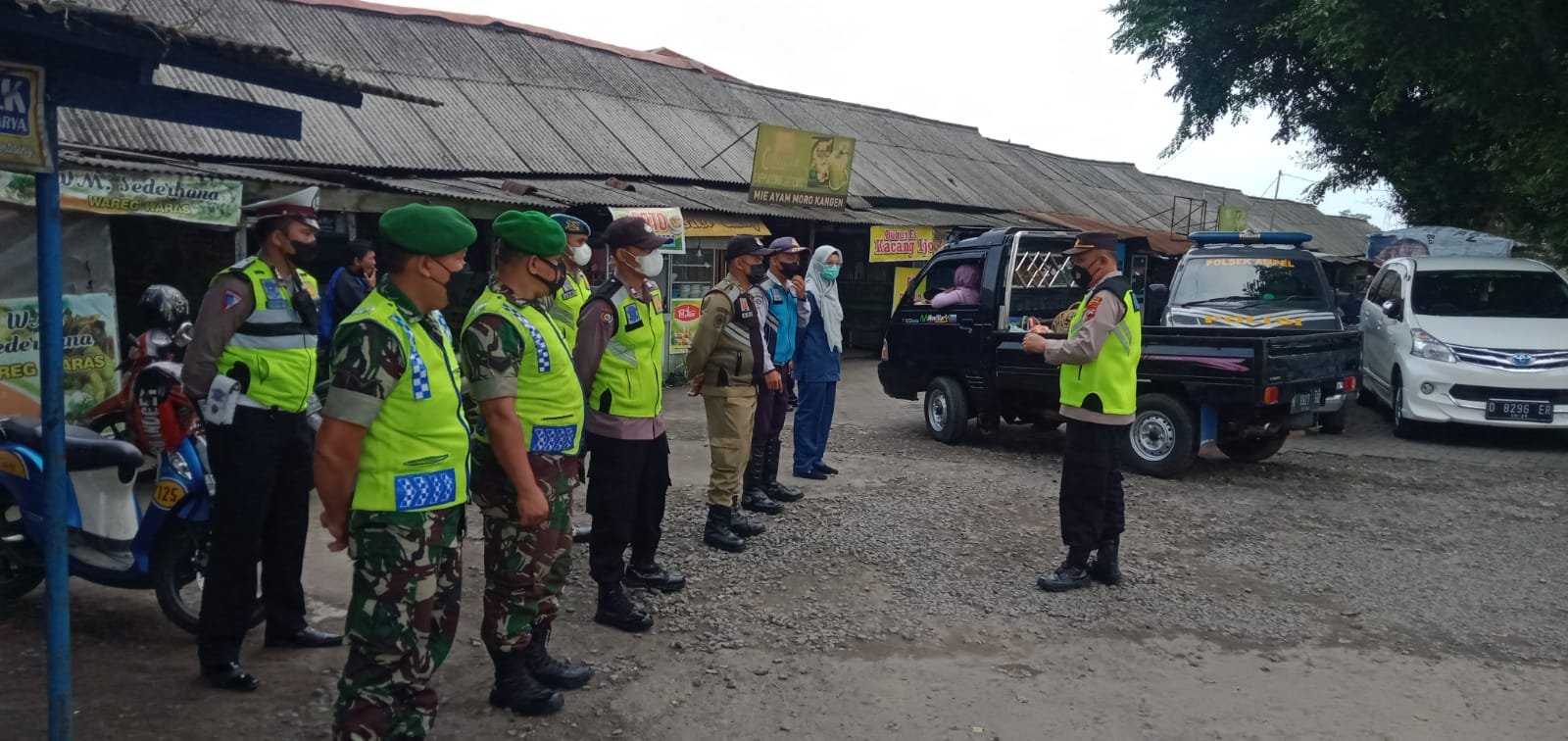 ACTUALNEWS.ID, Boyolali – Babinsa Koramil 05/Ampel Kodim 724/Boyolali Sertu Sri Wahyudi dan Sertu Eko Winarno ikuti apel bersama Polres Boyolali dan unsur terkait lainnya di pimpin oleh Ipda Hartanto di Pos pengamanan Natal dan Tahun Baru di Pospam Pasar Ampel. Senin (27/12/2021).