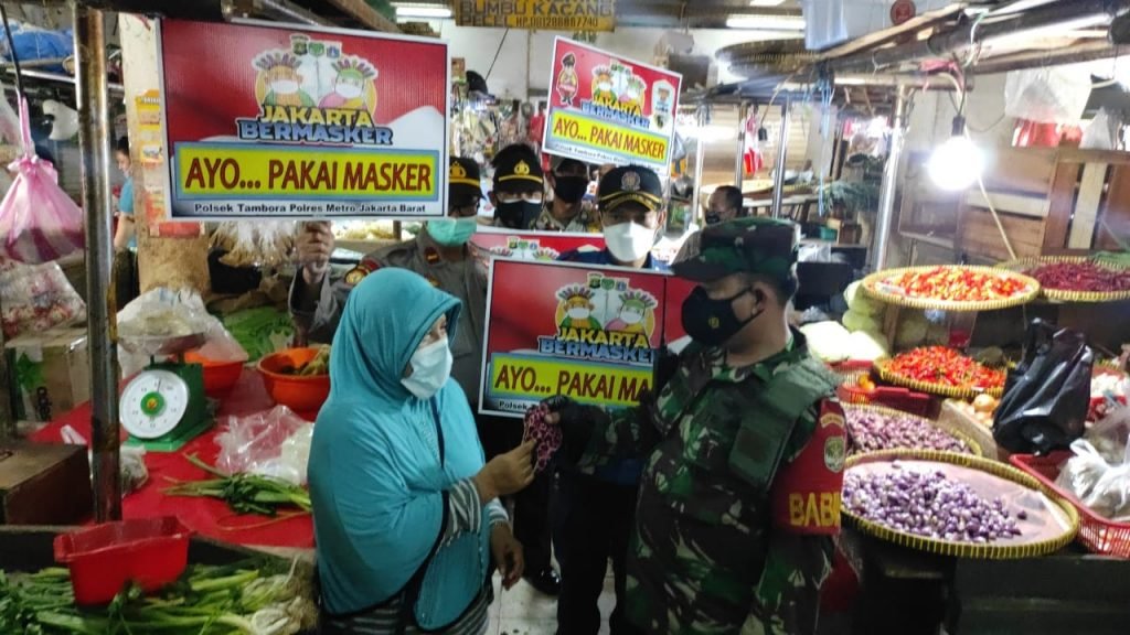 Kegiatan sosialisasi PPKM ini dilakukan di Pasar Jembatan dua Jl.Tubagus Angke Rt 05/09, Kelurahan Angke Kecamatan Tambora Jakarta barat, oleh 15 personil Babinsa Koramil 02/Tambora Kodim 0503/JB bersama Polsek Tambora, Satpol PP, Dishub dan Damkar, Sabtu (19/6) pagi.