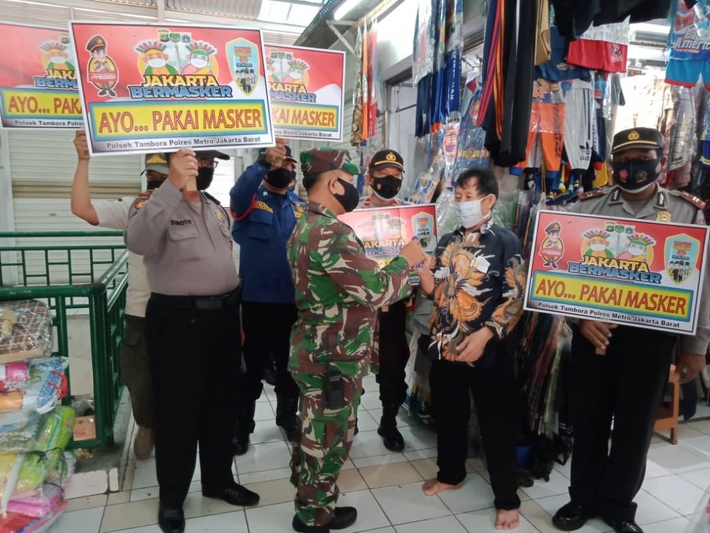 ACTUALNEWS.ID, Jakarta- Babinsa Koramil 02/TB Kodim 0503/JB Serda Sarip bersama Anggota Polsek Tambora,Pol PP dan Dishub rutin melaksanakan kegiatan PPKM yakni dengan sasaran sosialisasi dan penyuluhan tentang disiplin serta kepatuhan melaksanakan Protokol Kesehatan kepada Masyarakat di Pasar Jembatan dua Wilayah Kelurahan Angke Kecamatan Tambora Jakarta Barat.rabu (2/6)