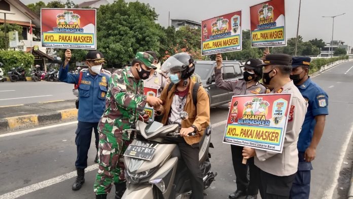 ACTUALNEWS.ID, Jakarta – Babinsa Koramil 02/TB Doddy bersama anggota Polsek Tambora, Pol PP, Dishub dan Damkar intens melaksanakan kegiatan sosialisasi PPKM dan pembagian masker kepada masyarakat.