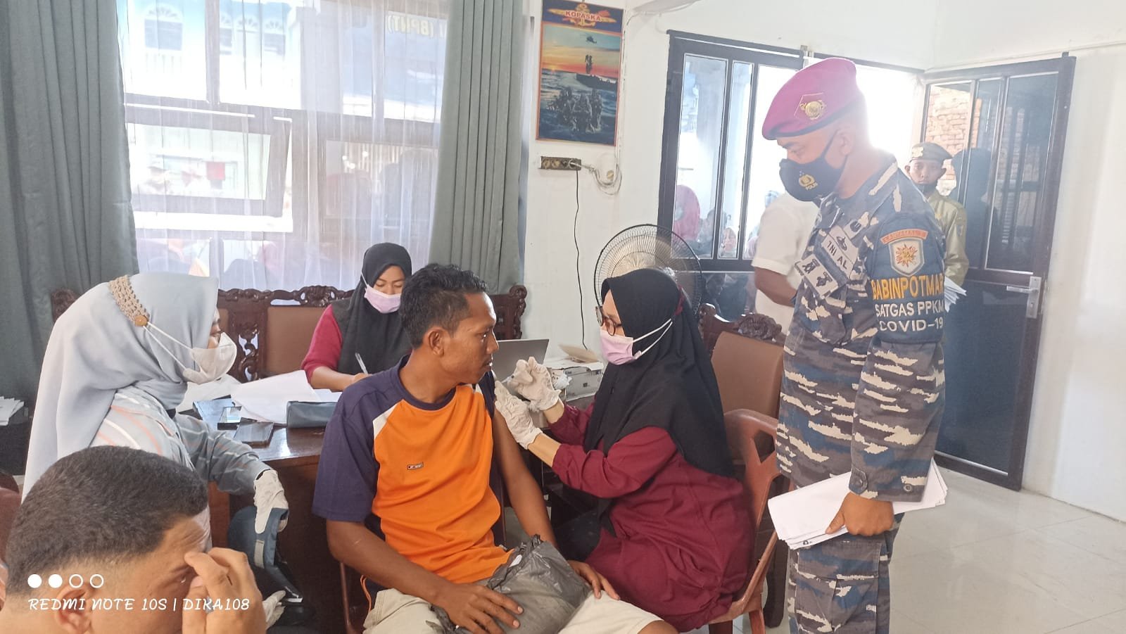ACTUALNEWS.ID, Tanjung Balai – Pangkalan TNI AL TBA melalui Posal Tanjung Tiram mendukung percepatan vaksinasi masyarakat Kecamatan Tanjung Tiram bekerjasama dengan Nakes Puskesmas Tanjung Tiram melayani vaksinasi di Posal Tanjung Tiram, Minggu (17/4/2022).