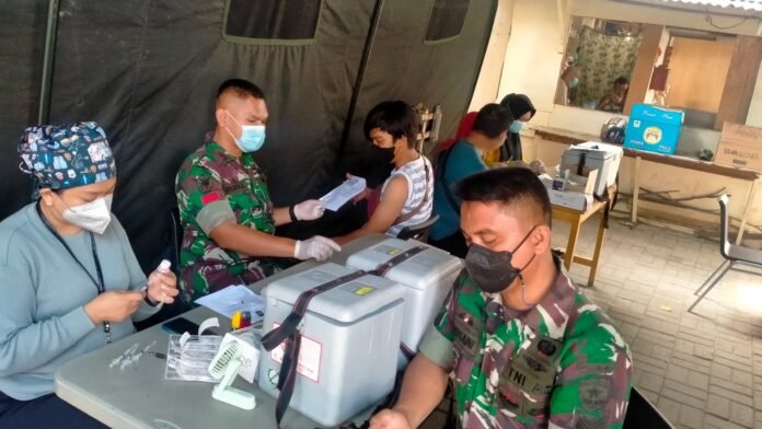 ACTUALNEWS.ID, Kodam Jaya – Serbuan vaksinasi Kodim 0503/Jakarta Barat yang dilaksanakan Koramil 01/Tamansari di halaman stadion sepak bola tamansari Jalan Mangga Besar VI Utara, Rt. 008/01, Kelurahan Tamansari Kecamatan Tamansari ramai dengan masyarakat yang ingin vaksin booster.