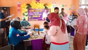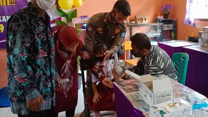 Tak Kendor, 210 Anak Sekolah Dasar Kembali Tervaksin Oleh TNI AL Lanal Babel