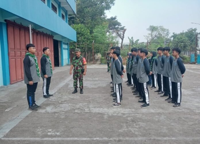 ACTUALNEWS.ID, Sragen, Membentuk sikap, kedisplinan, kekompakan, loyalitas dan kepedulian, dan rasa tanggung jawab sejak dini, adalah bagian dari bentuk keperdulian Babinsa Desa Soko Koramil 16/Miri Kodim 0725/Sragen memberikan pelatihan dasar Peraturan Baris Berbaris di SMK Muhammadiyah 5 Miri, Senin ( 27/06/2022 ).