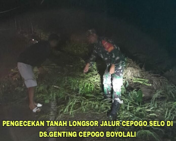 ACTUALNEWS.ID, Boyolali,- Cuaca ekstrem yang ditandai tingginya curah hujan dan angin kencang, mengakibatkan terjadinya bencana tanah longsor di jalur Solo-Selo-Boyolali (SSB) tepatnya di Jalan Boyolali-Magelang di Dukuh Genting Desa Genting Kecamatan Cepogo Kabupaten Boyolali. Sabtu malam ( 25/03/23)