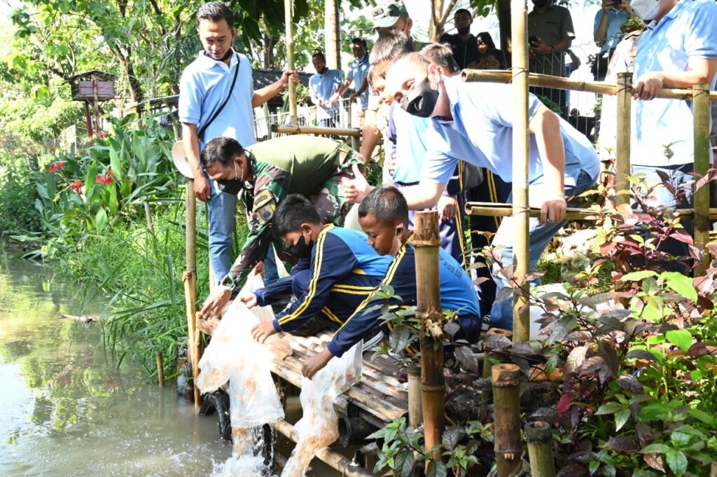 ACTUALNEWS.ID, Sukoharjo (18/06/22) Dandim 0726/Sukoharjo Letkol Inf Agus Adhy Darmawan, S.I.P, M.I.Pol melaksanakan hadir dalam kegiatan penyebaran bibit ikan di Taman Masdulkabi (Masyarakat Peduli Kali Baki) Ds. Menuran Kec.Baki Kab.Sukoharjo dalam rangka menyambut ulang tahun Fave Hotel Solo Baru yang ke – 10 Tahun, Sabtu (18/06/2022).