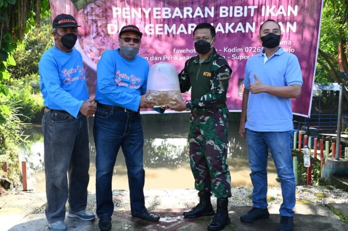 ACTUALNEWS.ID, Sukoharjo (18/06/22) Dandim 0726/Sukoharjo Letkol Inf Agus Adhy Darmawan, S.I.P, M.I.Pol melaksanakan hadir dalam kegiatan penyebaran bibit ikan di Taman Masdulkabi (Masyarakat Peduli Kali Baki) Ds. Menuran Kec.Baki Kab.Sukoharjo dalam rangka menyambut ulang tahun Fave Hotel Solo Baru yang ke – 10 Tahun, Sabtu (18/06/2022).