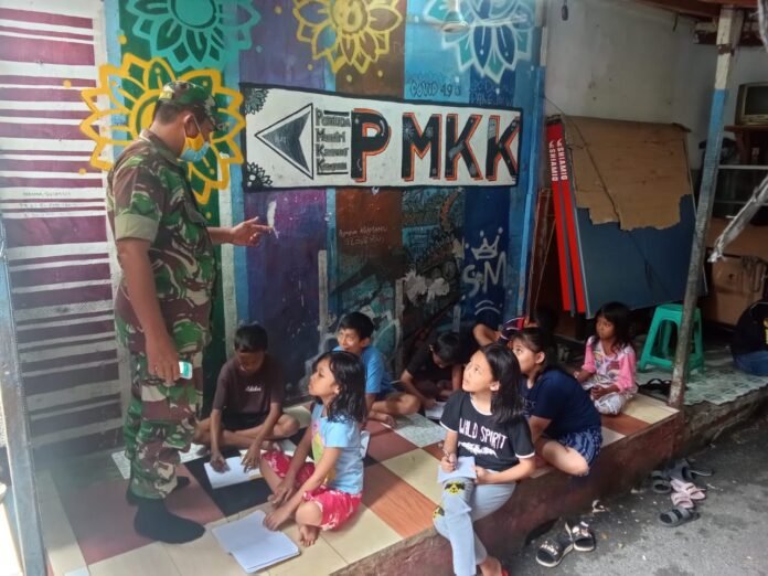 ACTUALNEWS.ID, Jakarta Barat – Kodim 0503/JB. Koramil 01/TS – Komandan Rayon Militer (Danramil) 01/Tamansari, Mayor Inf Zulkarnaen Galib melaksanakan pembelajaran Anak-anak Sekolah Usia Dini di Kampung Pancasila, Jalan Keamanan Dalam ll, Rt. 015/007, Kel. Keagungan, Kec. Tamansari, Jakarta Barat. Minggu (13/01/22).
