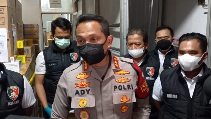 “Hari ini kita di lokasi di wilayah Kalideres kompleks pergudangan kita berada di salah satu ruko di mana terindikasi kami melihat beberapa fakta yang kami temukan dari hasil penyelidikan ada indikasi penimbunan (obat),” kata Kapolres Metro Jakarta Barat Kombes Ady Wibowo di lokasi.