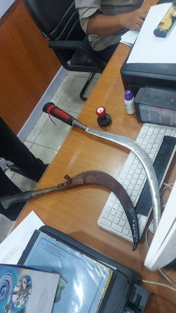 ” Ya benar 2 pemuda berhasil diamankan berikut senjata tajam jenis Celurit ” Ujar Akbp Agus Rizal saat di konfirmasi, Minggu, 13/6/2021