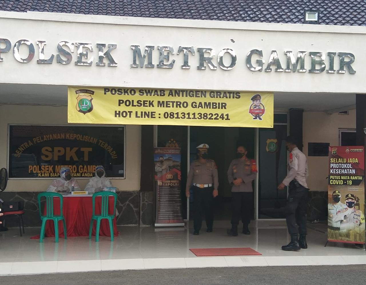 Dikarenakan masih terdapat warga masyarakat yang melakukan mudik lebaran , unsur 3 pilar baik dari TNI , Polri dan Pemerintah Daerah dengan gencar melalukan pencegahan untuk mengantisipasi lonjakan kasus covid-19 di Wilayah DKI Jakarta salah satunya yang dilakukan oleh Polsek Metro Gambir dengan membuat posko Pemeriksaan Swab Antigen Gratis di Halaman Polsek Metro Gambir yang telah di mulai dari Tanggal 15 Mei 2021.